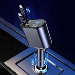 120W Fast Car Charger (2025 New Version) with 80CM Retractable Type-C & 30-pin Port Cables – Simultaneous Charging for 4 Devices – Universal Car Mobile Charger for All Smartphones & Tablets