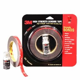 3M High Strength Double Side Bonding Tape for Plastic, Metal, Interior & Exterior Use, Multiple Surface Acrylic Adhesive (12mmX5m, 1 Roll+Primer)
