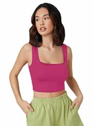 Aahwan Pink Solid Ribbed Square Neck Tank Top for Women's & Girls' (168_Pink_L)