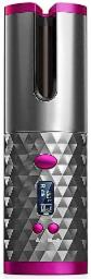 ABSTER Cordless Automatic Hair Curler - Portable USB Rechargeable Curling Iron with LCD Temperature Display, Fast Heating & Auto Rotating, Grey & Pink - Travel & Home Use