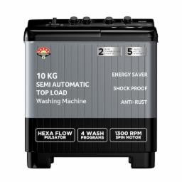 Acer 10.0 Kg 5 Star Semi-Automatic Top Loading Washing Machine(AR10SAMBGL124D, Black-Grey, 4 Wash Programs, Hexa Flow Pulsator, Advanced Lint Filter)