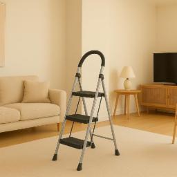 ADA Premium 3 Step Ladder - Home Use Heavy Duty Step Stool Foldable Iron Metal - Wide Anti Skid Steps - 2 Year Manufacturer Warranty - Grey