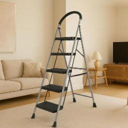 ADA Premium 5 Step Ladder - Home Use Heavy Duty Step Stool Foldable Iron Metal - Wide Anti Skid Steps - 2 Year Manufacturer Warranty - Grey