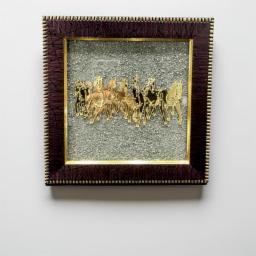 Aeora Rocks Seven Running Horses Pyrite Dust Frame Certified | For Attracting Wealth, Money & Protection | Vastu & Feng Shui Decor for Home & Office