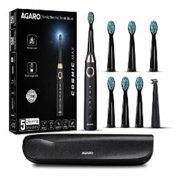 AGARO COSMIC MAX Sonic Electric tooth brush for adults with 5 modes, 7 brush heads, 1 Interdental head and rechargeable with 4 hours charge lasting up to 25 days (Black)
