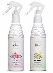 AIR-ROMA Combo of 2 Air Freshener Spray, Fragrance - Rose Original & Mogra Magic (400ml) | For Home Office, Bedroom, Drawing Room | No Chemicals, Artifical Fragrance