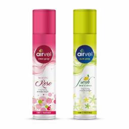Airvel Room freshener Spray Pack of 2 - with Mesmerizing Fragrance for your Refreshing Atmosphere|Helps to remove bad Odour|(Majestic RoseFresh Lemon,125g Each)