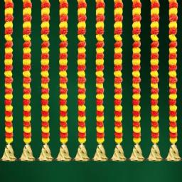 ALOUD CREATIONS 10Pc Handmade Artificial Marigold Flowers with Bell Hanging | Latkan Toran for Home, Office, Festival, Pooja Room | Artificial Flower Backdrop for Decoration | 5 Feet Length (60 inch)