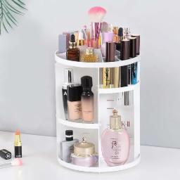 ALOXE Makeup Organizer, 360 Degree Rotating Cosmetic Storage Organizer, 7 Adjustable Layers Large Capacity Makeup Display Case, Fits Jewellery Makeup Brushes and Lipsticks (White)