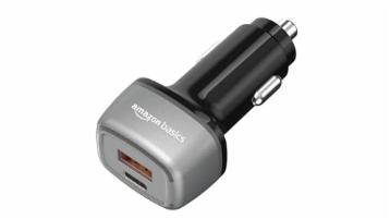 Amazon Basics Car Charger with 38W Charging| Dual Port -Type C and USB Output | Type-C USB Cable Included, Black