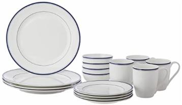 Amazon Brand - Solimo Ceramic 16 Piece Dinner Set | 4 Dinner Plates, 4 Quarter Plates, 4 Mugs & 4 Small Bowls | Blue Strip Design