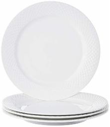 Amazon Brand - Solimo Handmade Ceramic Dinner Plate Set, 4 Pieces (White)