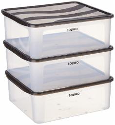 Get Amazon Brand - Solimo Plastic Fridge Multi Storage Container with Lid (Set of 3, 8000ml, Black) worth Rs.649 @ Rs.550 only.