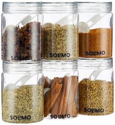 Amazon Brand - Solimo Plastic Storage Jar & Containers Set With Spoon | Air Tight & BPA Free | Kitchen Container Set | Multipurpose Jar | 500 ML Set 6 (Transparent)