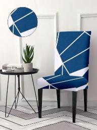 Amazon Brand - Solimo Polyester Spandex Stretchable Dining Chair SLIPCOVER (Checkered Print, Pack of 4, Dark Blue)