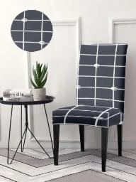 Amazon Brand - Solimo Polyester Spandex Stretchable Dining Chair SLIPCOVER (Checkered Print, Pack of 4, Light Grey)