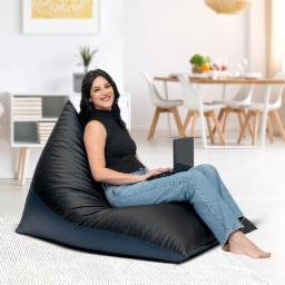 Amazon Brand - Solimo Premium Faux Leather Triangle Bean Bag, Filled with Beans | Capacity: Upto 6 Ft 3 in Height, 120 Kg Weight | Black & Navy Blue