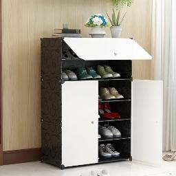 Amazon Brand – Umi Multi-Purpose Plastic 6 Layers Portable Shoe Rack Organizer with Door 18 Pairs Shoe Storage Cabinet Stackable Detachable Shoe Rack Free Standing Shoe Rack Organizer (61x31x93 cm) - D.I.Y