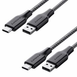 Ambrane Braided Type C Cable (Pack Of 2) Unbreakable 3A Fast Charging 1.5M For Smartphones,Tablets,Laptops & Other Type C Devices,Pd Technology,480Mbps Data Sync,Quick Charge 3.0 (Rct-15 Combo)-Black
