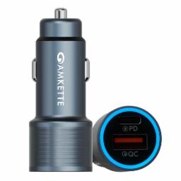 Amkette PowerPro 75W Car Charger with Universal Fast Charging | Premium Alloy Build | Dual Port USB-C+USB-A | LED Indicator | Ideal for iPhones, Smartphones, Tablets| Sleek, Lightweight & Durable