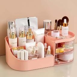 Anshri Make Up Organiser Cosmetic Storage Box with Drawers Dressing Table Organiser Makeup Box Beauty Organiser Large Makeup Box for Nail Polish Lipstick (Peach)