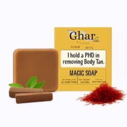 Apne GharSoaps By Fujino Sandalwood & Saffron Magic Soaps For Bath (100 Gms) | Paraben Free | Chandan & Kesar Bath Soap | Handmade Soaps For Glowing | Skin Brightening Soap For Men & Women (Pack of 1)