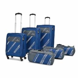 Aristocrat Polyester Trigon Hexa Active Luggage Set Of 6-3 Trolley Bags (Cabin 55Cm+69Cm+79Cm) & 3 Duffle Bags 52Cm For Travel With 5 Years International Warranty (Navy Blue,soft,4 Spinner)
