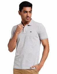 Arrow Men's Solid Half Sleeve Regular Fit Anti-Curling Cotton Polo T-Shirt (ASAATS3551CBA_Grey_S)