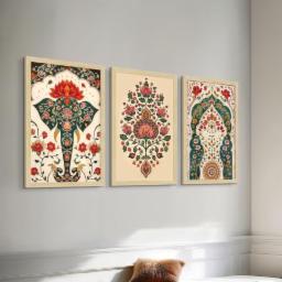 ArtX Paper Madhubani Paintings with Frame for Home Decor Wall Art, Wall Painting for Living Room, Multicolor, Natural Wood Color Frames, 12.0x18.0 inch, Set of 3