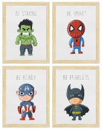 ArtX Wall Paintings For Kids Room, Superheroes Kids Room Wall Frame, Superheros, 10x13 inch each, Multicolor, Synthetic Wood, Set Of 4