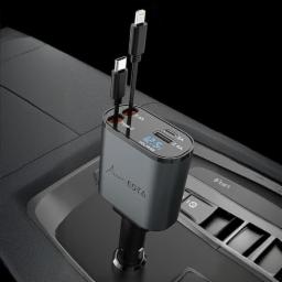 AsomESTA 120W Retractable Car Charger Fast Charging 4 in 1 Car Mobile Charger Adapter with Retractable Cables (80cm) and 2 USB Ports Car Fast Charger for iPad, iPhones/Galaxy Other Android Phones