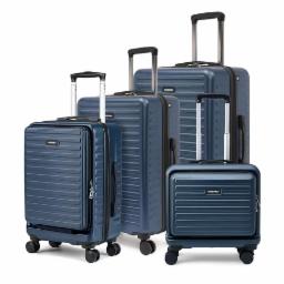 Assembly Polycarbonate Luggage Set of 4- OverNighter (16 Inch Bag) | Hard Cabin Trolley Bag Small (20 inches)|Check-in (24 inches)|Check-in Large (28 inches) - Stark (Blue)