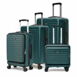 Assembly Polycarbonate Luggage Set of 4- OverNighter (16 Inch Bag) | Hard Cabin Trolley Bag Small (20 inches)|Check-in (24 inches)|Check-in Large (28 inches) - Stark (Green)