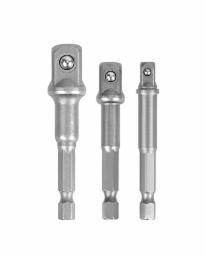 ATHGLOBAL Chrome Vanadium Steel Heavy Duty 3 Piece Set 1/4" 3/8" 1/2" Hex Shank Wrench Socket To Power Drill Adapter Bits Nut Driver Extension Bar Square Head For Automotive And Home Repair Tool Kits