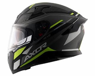 Axor Apex Turbine ISI ECE DOT Certified Full Face Dual Visor Helmet For Men And Women With Pinlock Fitted Outer Clear Visor And Inner Smoke Sun Visor Dull Black Neon Grey Helmet-XL
