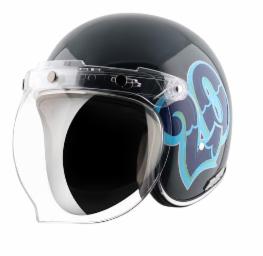 Axor Retro Jet Sportz C13 ISI and DOT Certified Gloss Finish Open Face Helmet for Men and Women with Clear Visor- Slate Blue-XL, Cycling