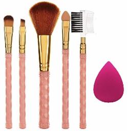AY Makeup Brush Set of 5 and 1 Makeup Sponge Puff (colour may vary) | Face and Eye Makeup Brushes Set | For Cream, Liquid and Powder Formulation |