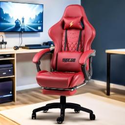 BAYBEE Drogo Emperor Multi-Purpose Ergonomic Gaming Chair with 7 Way Adjustable Seat, Head & USB Massager, PU Leather Lumbar Pillow Home & Office Chair with Full Reclining Back Footrest (Red)