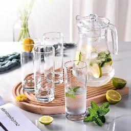 bellemax Italian Premium Water and Juice Glasses Set of 6 and Jug Set Combo,(6 Pieces Glasses 350ML and 1 Water Juice Jug 1.6 Liter), Transparent, Glass and Jug Set (Round)