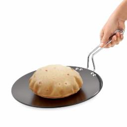 BERGNER ArtisanForge Hard Anodised 22cm Roti/Paratha/Phulka/Chapati Tawa, Wire Handle, Metal Kitchen Tool Friendly, Durable, Even Heat Distribution, 4.8mm Thickness, Gas Stove Compatible, Black