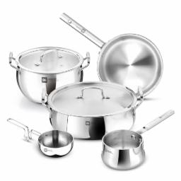 Bergner BE Essentials TriPro Tri-Ply 7 Pcs Cookware Set of Rice Handi 24cm (5.5 L) with Lid, Biryani Handi 28cm (6.4 L) with Lid, Sautepan 22cm (2 L), Coffee Warmer 12cm (800ml), Tadkapan 10cm (300ml)