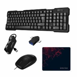 Bestor Set of 5 Combos of USB Wired Keyboard, Wired Mouse, Mouse Pad Base Waterproof, Type A to Type C OTG Adapter & 4 Port USB HUB for PC, Laptop, Computer
