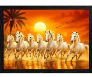BHATI ECO SALES 7 horses painting vastu | with frame Realistic Painting 10 X 13 horse painting for living room | Big Size Photo & Office | Seven Running Horse Decor Living Room Decoration