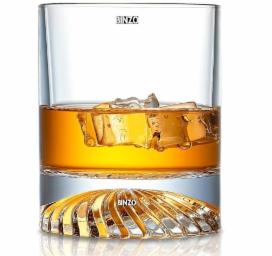BINZO Glass Whiskey Glasses with Designer Bottom, Set of 6, 300 ml, Perfect for Bar Home, Scotch Glasses, Whisky Rocks Glass, Liquor Tumbler, Cocktail Glasses Set, (Spiral Whiskey 6 pc)