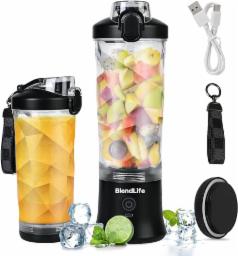 BlendLife Ultra Waterproof Portable Juicer & Blender for Juices, Shakes, Smoothies | Pulse Mode, LED Lights, 230W, 4000mAh Battery, Inbuilt Sipper & Carry Handle, 600ml Convertible Jar – Black