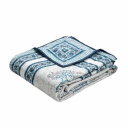 BLOCKS OF INDIA Hand Block Printed Cotton Single Size Reversible Malmal Dohar for Summer (Blue Tree)-300 TC