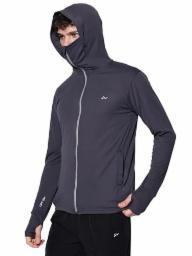 BLUE TYGA Men's Nylon Blend Standard Length Sunscreen Jacket 2.0 - Advanced Protection from Sun & Pollution - UPF 50+ Protection Charcoal Grey Large