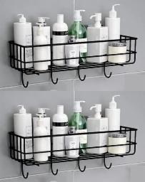 BLUEROCKS Bathroom Rack - Bathroom Shelves - Kitchen Storage – Self Adhesive Bathroom Shelf and Shampoo Holder with 4 Hook Adhesive Shower Caddy Metal Shelf (Pack of 2)