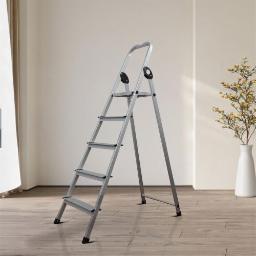 BonKaso Climb Lite 5‑Step Foldable Aluminium Ladder for Home – Anti‑Slip Steps & Edge Guards with Sure‑Hinge Technology, Lightweight & Durable Multi‑Purpose Step Ladder - (Black) - 2 Years Warranty