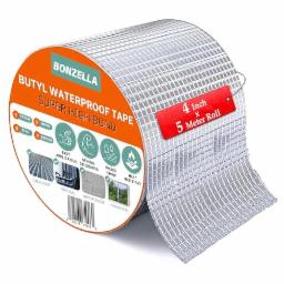 BONZELLA Waterproof Tape for Roof & Pipe Leakage Solution 4in x 5m Roll,Strong Adhesive Aluminum Foil Butyl Rubber Waterproofing Tape for Repair Water Tank leakage Seal Tape,Silver (4 Inch (10CM*5M))